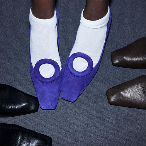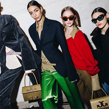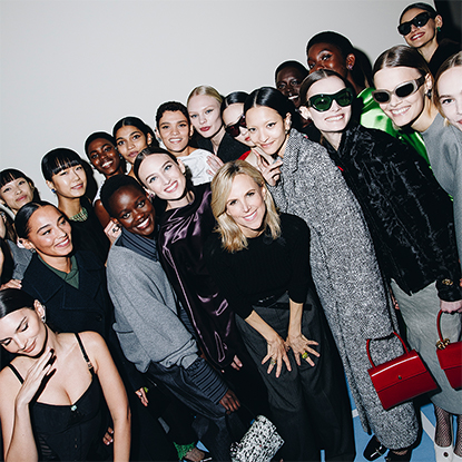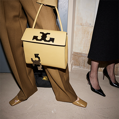 Our signature accessories evolve with the Pierced pump, a 3D-printed minaudière, and a new shopper tote. We were thinking about making the everyday sublime: an old jacket, a lampshade, even a shower cap.”—Tory Burch